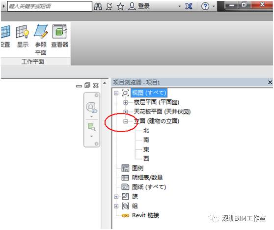 2. 找到立面,记得用鼠标左键单击立面左侧的+号,展开立面视图哟(其实小编刚开始也不会,自己独自一人研究了好久)。