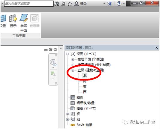 3. 随意选择东南西北中的一个任意立面(你喜欢就好),小编经常选的是北立面,鼠标左键双击北,就直接进入北立面啦,是不是很简单。