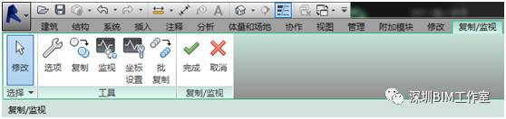13. 单击选项卡“修改,标高”右边的复制监视,单击有√的完成就可以啦!