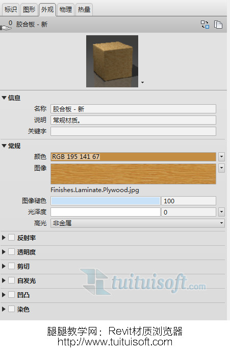 3、外观:用于设置材质在真实状态下,材质的外观显示及材质贴图的相关信息