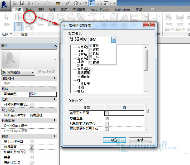 2、点开族类别和族参数