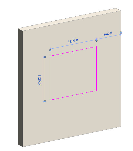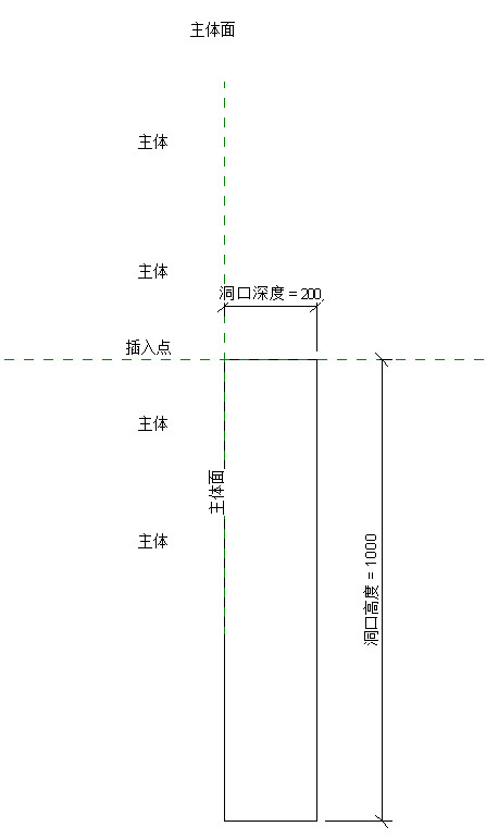 2、设置墙面为参照平面,使用空心拉伸命令在墙面上绘制洞口形状