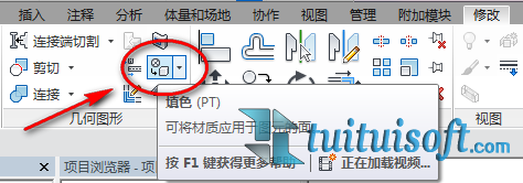 在修改选项卡下使用填色命令,快捷键(PT)。