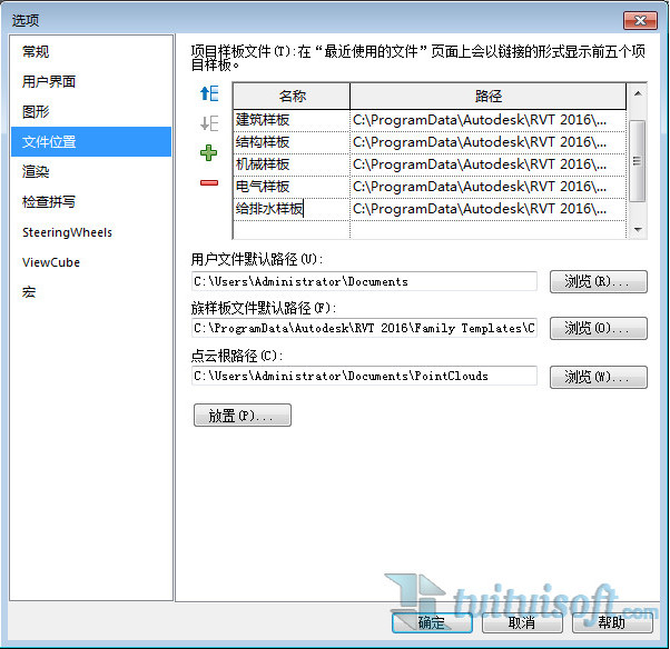 另外:软件默认项目样板文件路径为:C:\ProgramData\Autodesk\RVT 2016\Templates\China