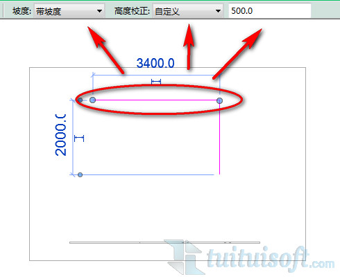 在路径编辑状态下先绘制好路径,选择某段路径,在选项栏中会出现“坡度”和“高度校正”选项,分别选择“带坡度”和“自定义”,并输入所需的数值,该段栏杆扶手就会有坡度了!
