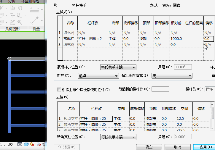 顶部和顶部偏移:用来控制常规栏杆的长度以及顶部的位置