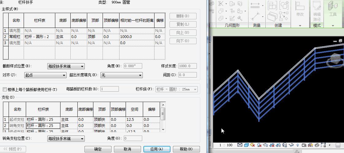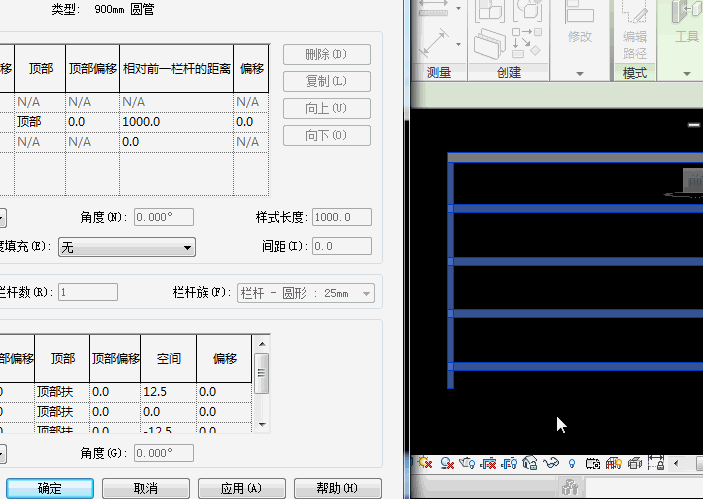 栏杆族、底部、底部偏移、顶部、顶部偏移、偏移与常规栏杆是一样的,这里就不多做讲解