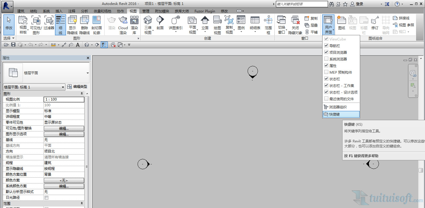 我们可以在视图选项卡窗口面板的用户界面中选择快捷键选项,进而根据我们自身的需求设置快捷键。