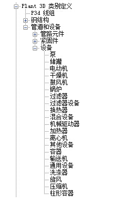 3、继续展开该列表,直至找到某个 Plant 3D 对象类别定义(例如:“管道和设备”“设备”)并单击。