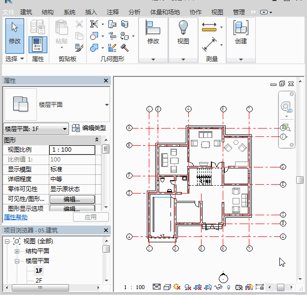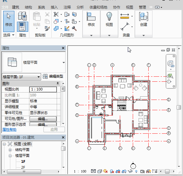 打开【项目浏览器】中的【组】进行创建实例,放置的时候要对准组原点