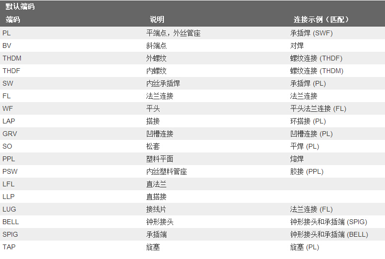3、通常情况下,不能直接处理端码,因为它们是设备管嘴或管道等级库中使用的零件的只读特性。