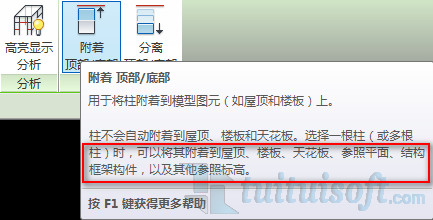 “附着顶部/底部”这个命令存在一些局限性,通过说明我们也可以看到(鼠标放在工具上几秒钟就可以看到了!),只能附着在屋顶、楼板、参照标高等,对于楼梯坡道这些是无法直接选择的!!