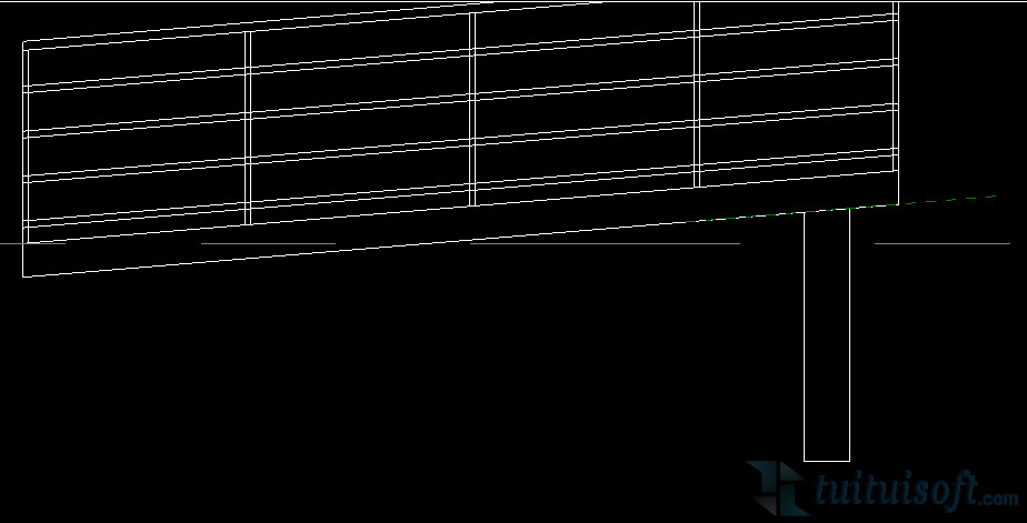 2、转到剖面视图,沿着坡道底板画一条参照平面