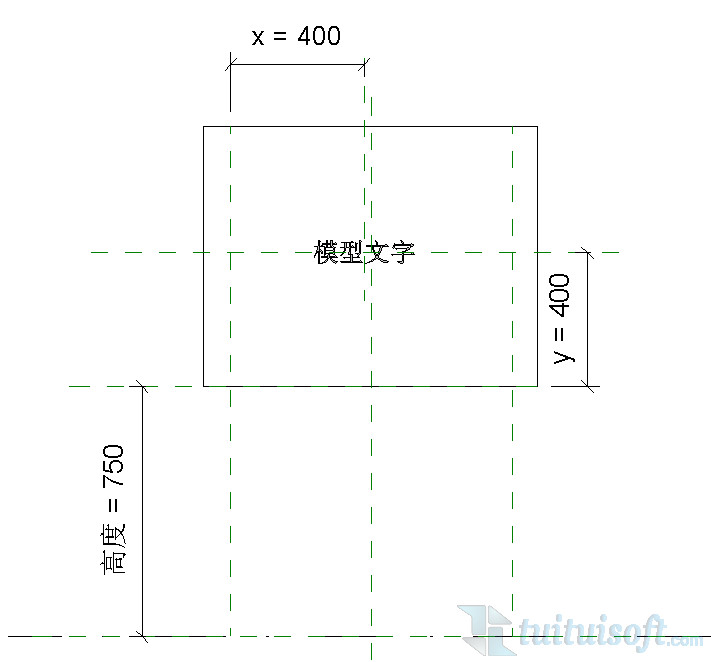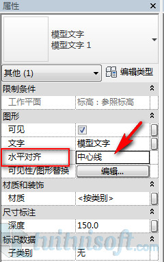 放置一个模型文字,记得将模型文字的“水平对齐”改为中心线,这样就不会因为文字的增加或减少而出现模型文字偏移的现象了