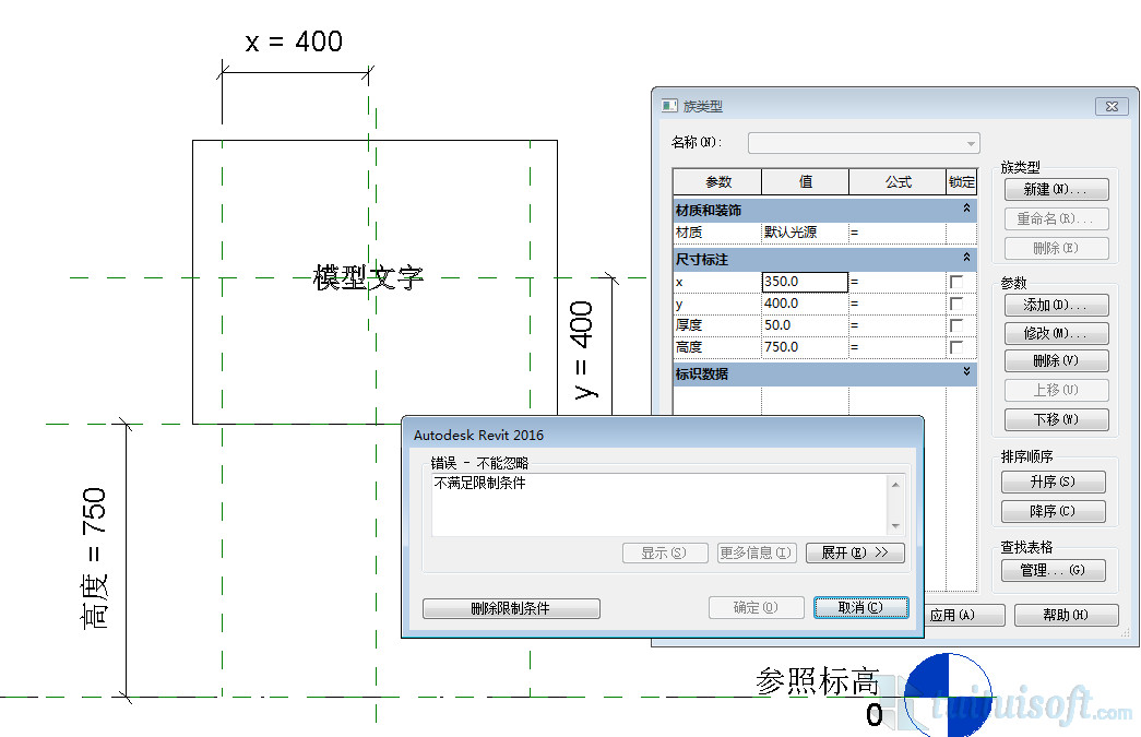 修改x的距离时出现错误提示“不满足限制条件”