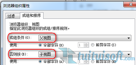 在浏览器组织属性中点击“成组和排序”选项栏里成组条件中选择“父视图”否则按里“子视图”