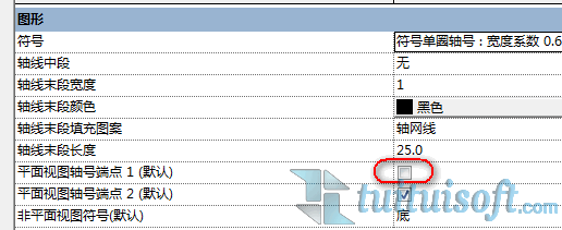 选择轴网在属性工具栏里点击“编辑”,接着出现一个类型属性的框,在类型参数下方的图形中的平面视图轴号端点1(默认)里把“勾”取消。