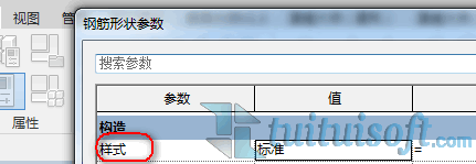 进入族的工作界面后,首先应检查“族类型”属性里的样式是否符合自己的钢筋族样式。在这里选择“标准”样式。