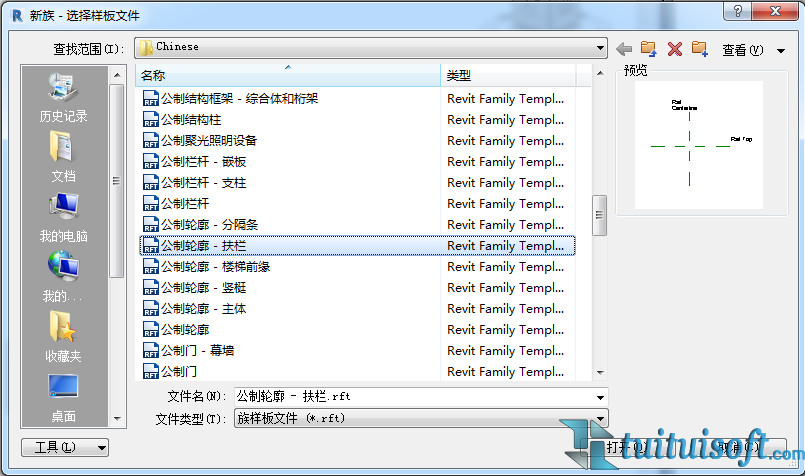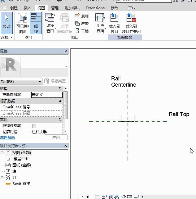 然后,将它载入我们在第一步绘制的栏杆当中并在栏杆族中进行轮廓的添加☟