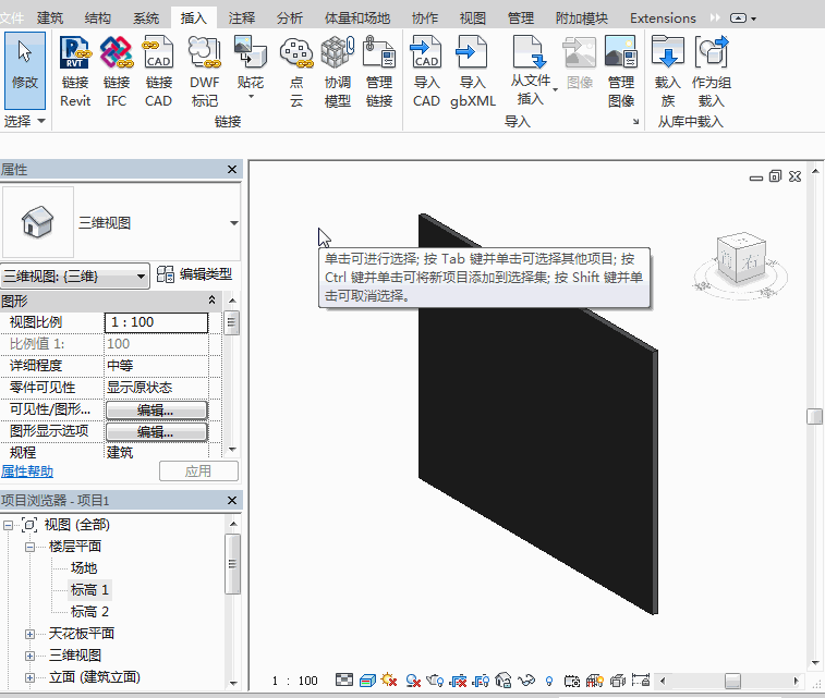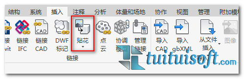 在三维视图中打开【插入】选项卡中的【贴花】
