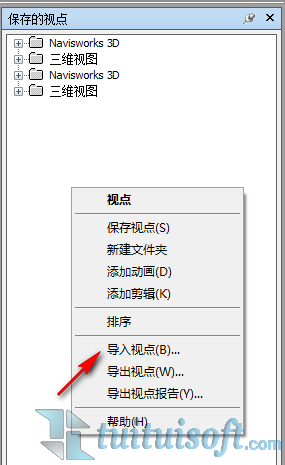 在保存视点管理窗口中按鼠标右键选择“导入视点”