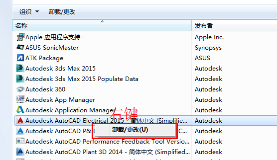 2、从“添加或删除程序”对话框中,选择最新版本的 AutoCAD Electrical,然后单击“更改/删除”按钮。