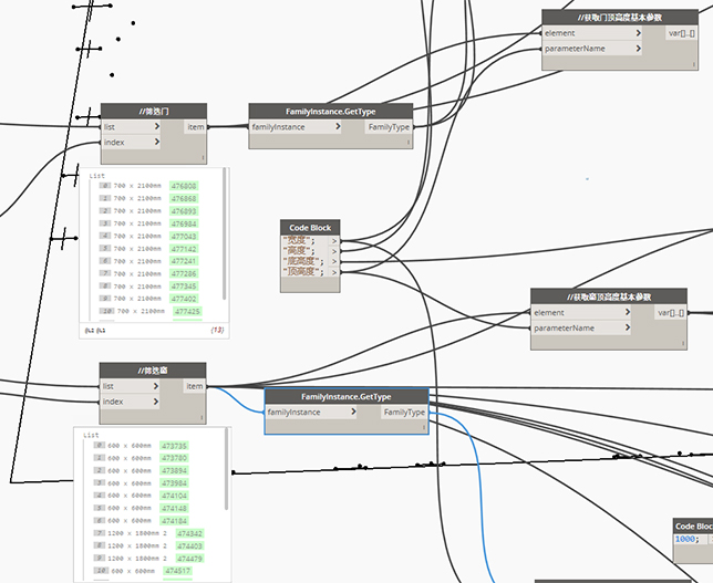 采用FamilyInstance.GetType节点,对窗体,门数据进行读取