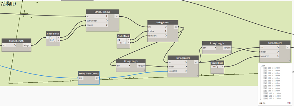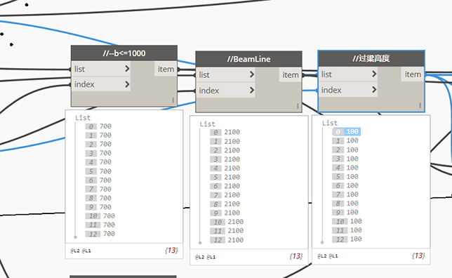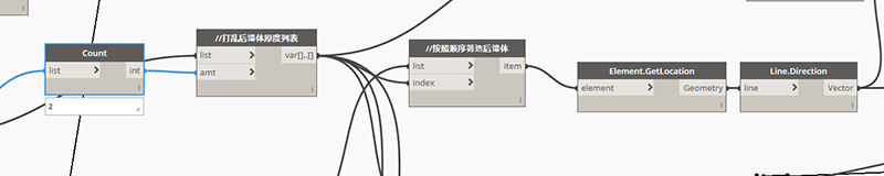 这里对墙线向量进行选取是通过将数组拍平,通过List.AllIndicesOf节点进行重新排序,通过固定的排序将所有数据进行重新组织。
