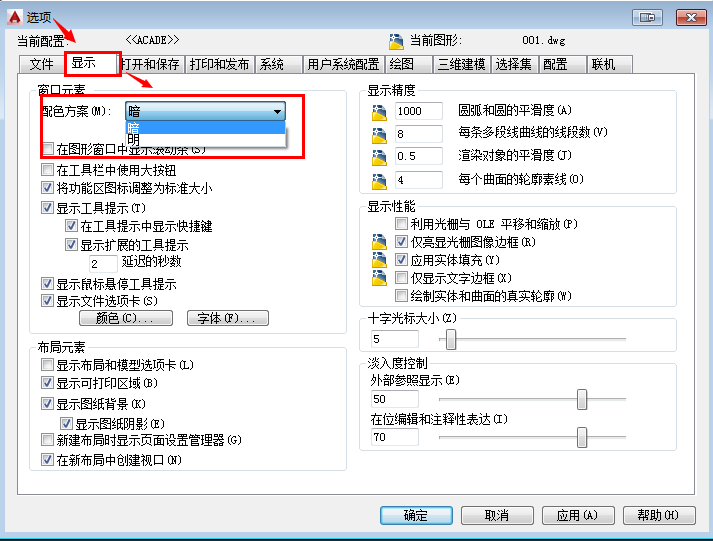 3、显示—配色方案—亮