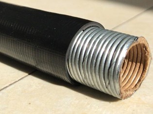 8.金属软管:又称蛇皮管,一般敷设在较小型电动机的接线盒与钢管口的连接处,用来保护电缆或导线不受机械损伤。