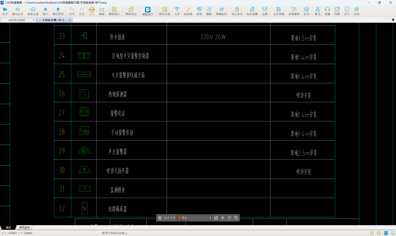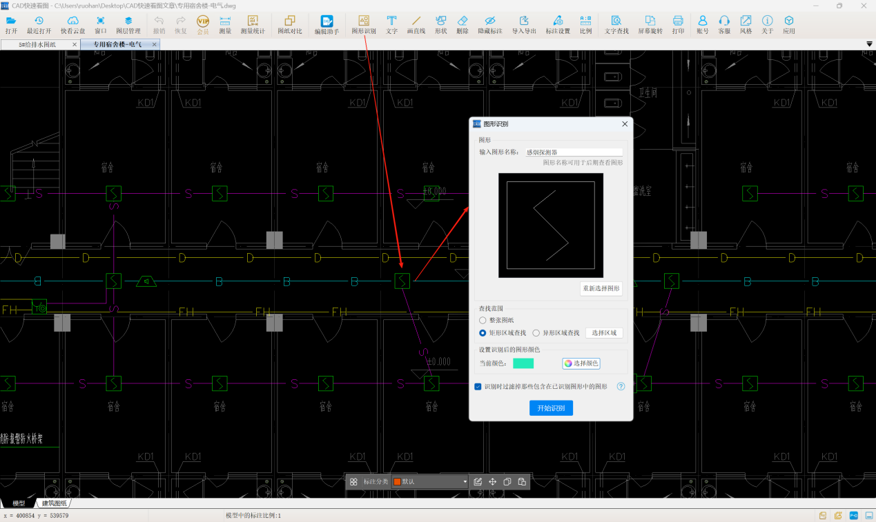 火灾报警系统消防电器具数量可以不在手动统计,CAD快速看图的图形识别功能可以快速识别图形数量,计算计量不发愁。