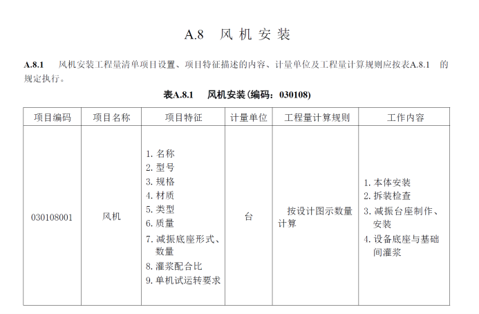 风机安装按设计图示数量以“台”计算,此处使用计量标准附录A 机械设备安装工程计量规则。