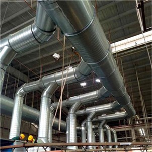 3)负荷材料风管包括:塑料复合钢板风管、双面铝箔复合绝热材料风管、铝箔玻璃纤维复合材料风管和机制玻璃纤维增强铝氧镁水泥符合风管。双面铝箔复合绝热材料风管又包括聚氨酯铝箔复合风管和酚醛铝箔复合风管等。