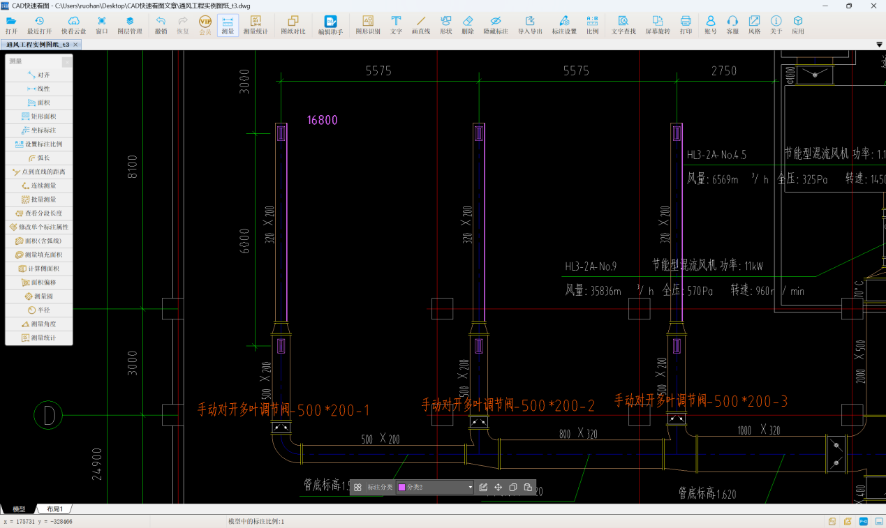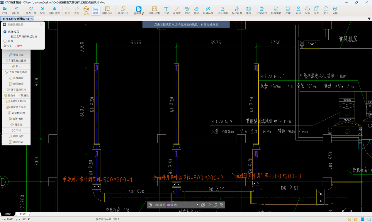 #通风管道#批量测量#标注分类#通风空调