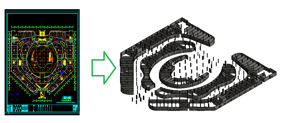 橄榄山软件可以实现快速把建筑、结构、管道的CAD平面图纸转换为revit三维模型,大大提高了revit的工作效率。