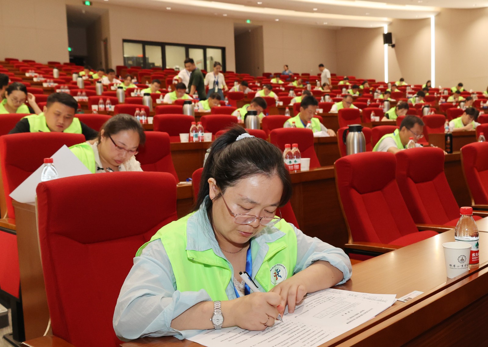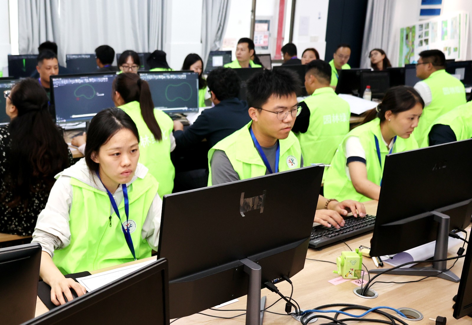 理论考试现场,选手们沉着应答,展现出对花境植物习性、设计及养护等专业知识的考量。随后的CAD机考环节,选手们熟练的操作计算机,将设计理念转化为精确的图纸,一幅幅构思精巧、布局合理的花境设计方案跃然眼前。