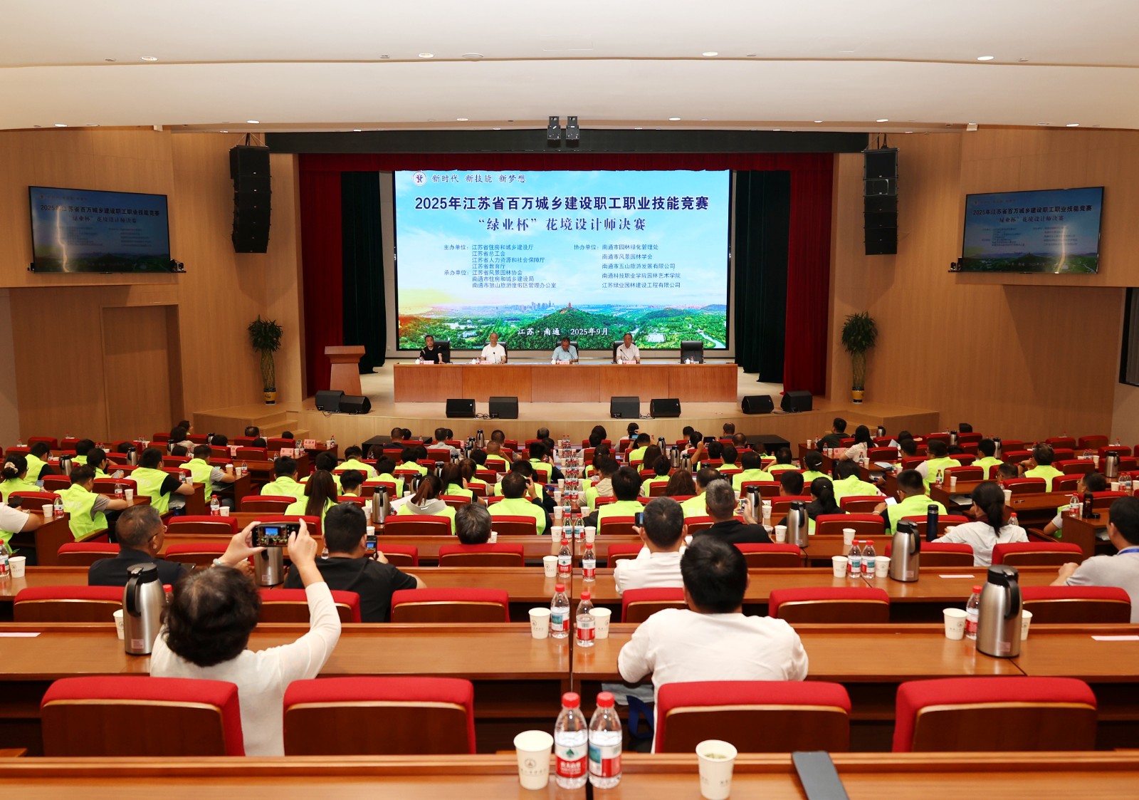 2025年江苏省百万城乡建设职工职业技能竞赛“绿业杯”园林绿化工(花境)决赛在南通盛大举行。本次竞赛由江苏省住房和城乡建设厅、江苏省总工会、江苏省人力资源和社会保障厅、江苏省教育厅主办。江苏省风景园林协会、南通市住房和城乡建设局、南通市狼山旅游度假区管理办公室承办。本次竞赛主题为“青山毓秀、绿水情怀”,全省13支代表队共63位选手参赛,为南通带来一场别开生面的园林艺术视觉盛宴。