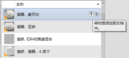 选择库列表中的材质,然后单击位于材质右侧的“添加”按钮。