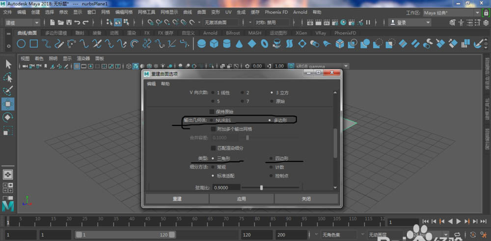 7、可以选择对重建后的曲面的是多边形还是nubers进行选择