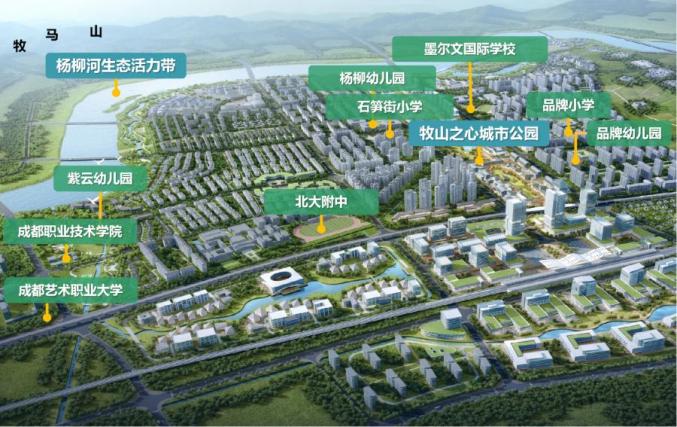这里拥有杨柳河滨河公园、牧马山森林康养公园、白鹤滩国家湿地公园等丰富的生态资源;成都艺术职业大学、成都职业技术学院、墨尔文国际学校、北大附中、石笋街小学等优质的教育资源;还有天府智能制造产业园、天府农业博览园、梨花溪文化旅游区、天府国际生物城等强大的产业资源。