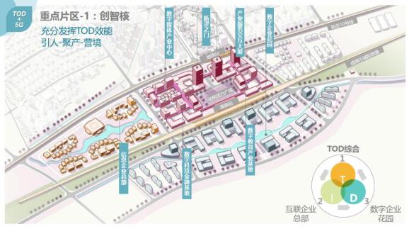 “TOD+5G”公园城市社区示范——引入“物理+数字”双开发模式,策划承载5G场景的城市底板,导入TOD商务+和电子商务+,打造新商贸核心区。