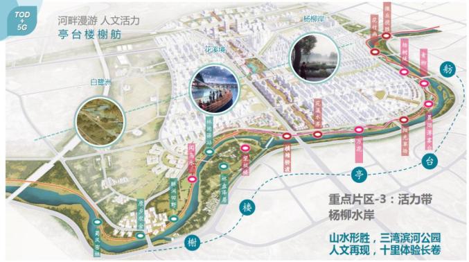“一带”即“活力带”,围绕白鹭州、花溪境、杨柳岸三大场景,呈现“三湾滨河公园、十里体验长卷”,打造生态人文价值转换带。