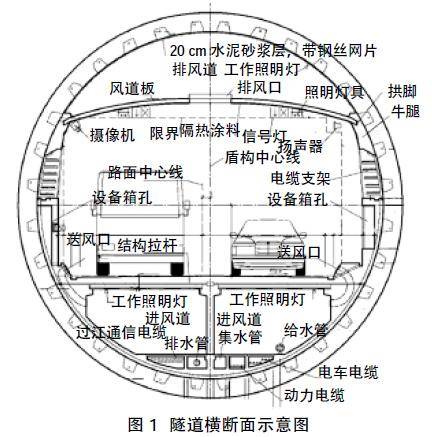 施工筹划是一个工程成败的关键,筹划的科学合理性直接决定着整个工程的进度。延安东路隧道大修包含通风、排水、监控、道路、结构、强电、弱电等多项专业的拆旧和换新,在短短的9.5个月内完成大修施工,立体交叉施工在所难免。隧道横断面示意图见图1。