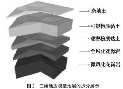 三维地质模型的在实际工程的运用中具有十分重要的意义[1]。现有勘察报告中普遍采用的柱状图、剖面图与钻孔平面信息作为成果,报告使用人再根据这些成果重构整个地质情况,不同人重构模型具有一定的差异,从而可能会导致报告成果出现人为错误,从而降低成果质量;建立三维地质模型,可以将地层信息融合到地质模型中,展示方式不再局限于点(钻孔柱状图)和面(钻孔剖面图)的形式,表示方式更直观,可以完整地将场地地质情况展示。