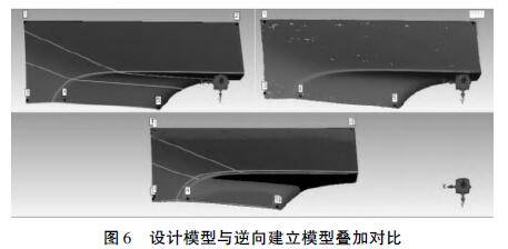 结合三维激光扫描,点云逆向建模技术,将逆向建立的模型与设计BIM模型进行误差对比,可以验证施工是否准确,从而检验施工的质量。如图6为某构件的设计模型与逆向建模模型的叠加对比,可分析现场施工与的差异情况。