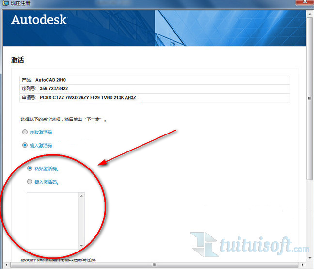 三、把注册机中得到的激活码复制粘贴到CAD2010的激活对话框中,点“下一步”,提示激活成功。
