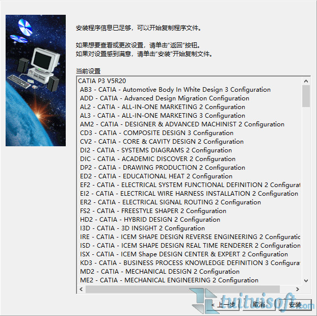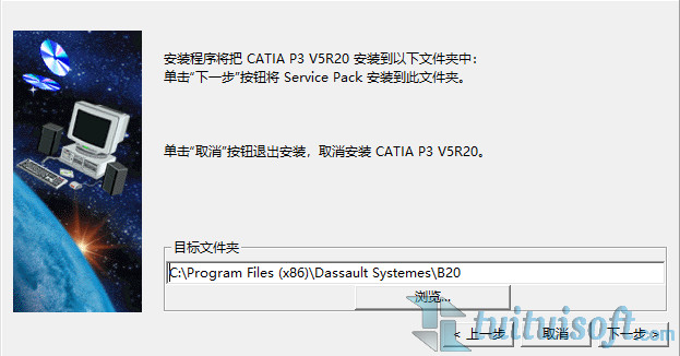 接着选择安装目录的设置,用户可以自定义的选择安装的路径,但是为了方便对操作系统的维护及软件运行互不产生稳定性,建议将安装路径选择相应的目录,比如:C:Program Files (x86)Dassault SystemesB20intel_acodein。然后选择下一步会出现在一个对话框提示安装目录不存在需要创建安装目录吗?这里选择“是”