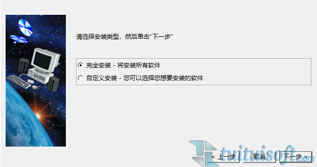 接着选择安装的类型,在这里用户可以定义安装功能的多少,以满足不同用户的需求。当然为了保证功能的完整性,选择默认的“完全安装”
