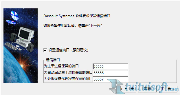 以下是“软件需要保留通信的端口”的对话框,这里不做任何的修改,选择默认的即可,接着点击下一步