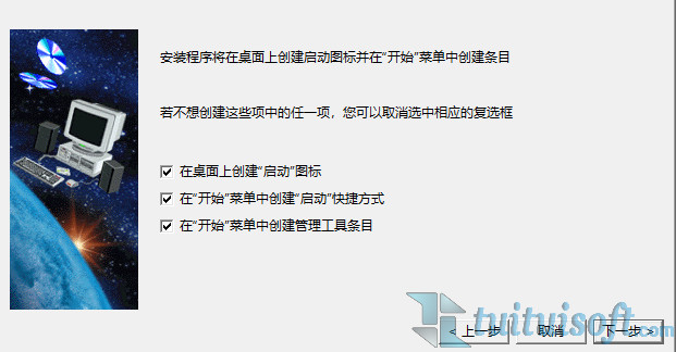 创建快捷方式的设置,选择默认的设置,点击下一步继续安装设置